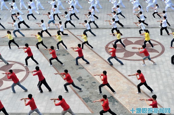 武当太极拳十八式比赛作为首届鲁班科技文化节活动之一,自去年12月开始,建工系2010级全体同学参加训练,使习训太极拳在该系蔚然成风。