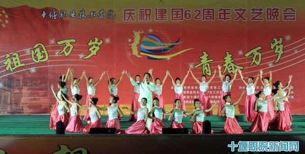 文艺晚会由院党委工作部、学生工作部(处)、团委、素质拓展中心主办。院长魏文芳致贺辞,对全院师生致以节日的问候,并深情回顾了祖国建国62周年的光辉历史和我院的发展历程,鼓励2011级新生们努力学习、奋发成才。魏文芳说,学院作为国家骨干高职建设院校、湖北省示范性高职院校,近年来改革发展取得了丰硕成果,较好地服务了地方经济社会发展,全院师生要紧紧围绕内涵建设等中心工作,努力拼搏,共创十堰职院的美好未来。
