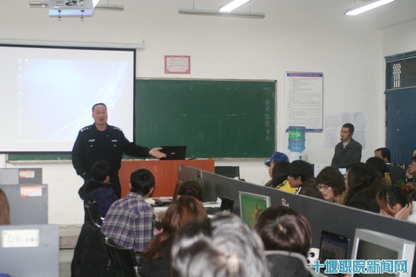 另外为了把真实的设计项目引进课堂,在09级艺术设计专业《招贴设计》课程中,还把市公安局交警支队“带文明上路、携安全回家”的招贴宣传设计,作为本课程的一个设计项目进行教学。为了让同学们更深刻、更全面的了解交通安全知识,22日上午该系还特地邀请了交警二大队副大队长、“全国五一劳动奖章”——贺文勇警官做了交通安全相关知识的讲座。