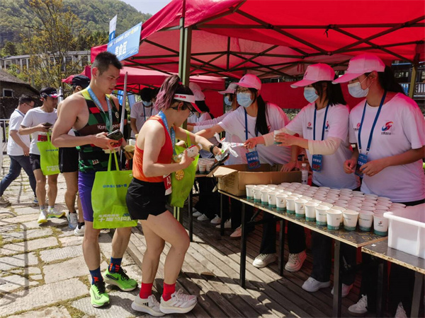 凌晨4点,天还未亮,我校师生志愿者已集合完毕乘车出发。4点50分和5点20分,志愿者们分别顺利抵达半马终点和全马终点并开始赛前准备工作。此次比赛中,我校志愿者负责半马终点、全马终点的全部志愿服务工作,370名学生志愿者分布在全马终点及半马终点的龙门区、计时区、顺序牌区、完赛包区、存衣车、赛后控制中心、兴奋剂检测区、全马热食区、冰水区、赛后拉伸区等区域,志愿服务内容涵盖终点龙门前男女运动员分流、拉终点冲刺线、协助计时、协助裁判手抄运动员成绩、为到达终点的男、女前十名挂顺序牌、为运动员提供赛后热食、肌肉拉伸、按摩服务、指引完赛运动员乘坐接驳车离场等。10名“赛道女孩”身穿汉服举牌,在赛道沿线给予选手里程提示,成为赛道上一道靓丽的风景线。校团委选派10名教师作为带队教师参与到对各个区域志愿服务工作的指导中。当天上午,还有近200名志愿者在校门口及赛道沿线为堰马选手加油喝彩。