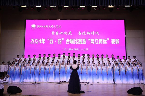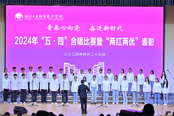 新闻网讯(文/郑丽琼 图/姚堃 赵太银 张逍杰)4月29日晚,和山会堂歌声嘹亮、掌声雷动,我校“青春心向党 奋进新时代”2024年五·四歌曲合唱比赛暨“两红两优”表彰活动举行。校党委委员、副校长胡昌龙,各二级学院党总支书记、分团委书记、师生代表四百余人到现场观赛。合唱比赛邀请到党委组织部、退休教职工服务中心、党委宣传部、人事处、校团委等部门负责人和相关老师担任评委。